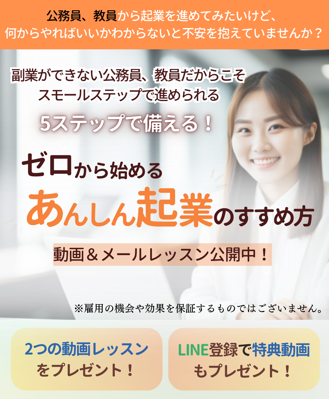 ※すべて教員・公務員から起業した、あるいは起業する人の声です。また、個人差がありますので、成果を保証するものではございません。
